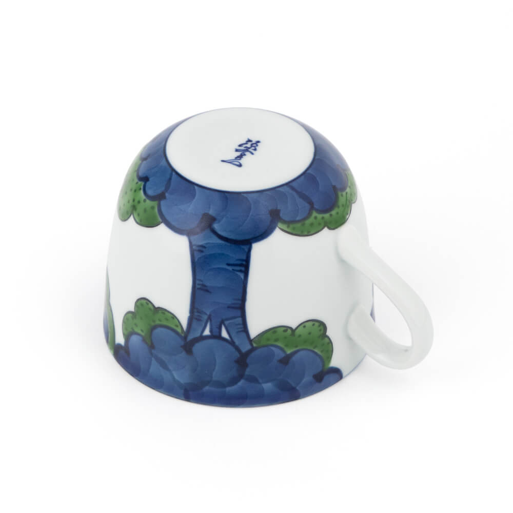 染錦大樹(そめにしきだいじゅ) 「染錦大樹」の名の通り、大らかな樹を染濃と緑彩で表現しています。 ユーモラスな絵柄・色彩からはモダンさも感じられ、デザイナーズのカトラリーやテーブル用品、モダンインテリアのなかにあっても存在感が引き立ちます。 大きめサイズのモーニングカップで、たっぷりコーヒーやカフェオレ、カフェラテなどで、朝のひとときを過ごすのにもぴったりです。 また贈り物としても大変喜ばれる器です。 染錦大樹シリーズ