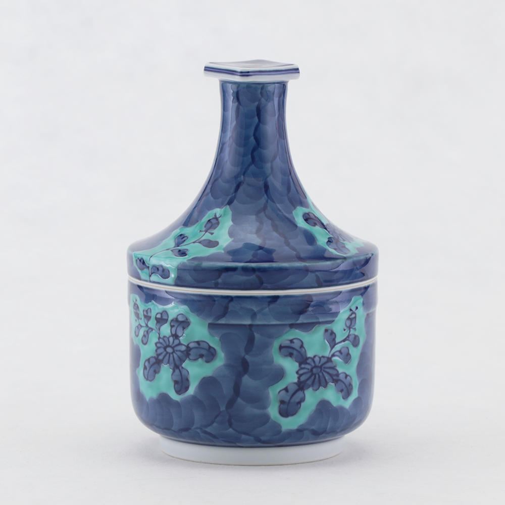 ☆50% OFF!!☆ 青彩菊絵 蓋物(小)