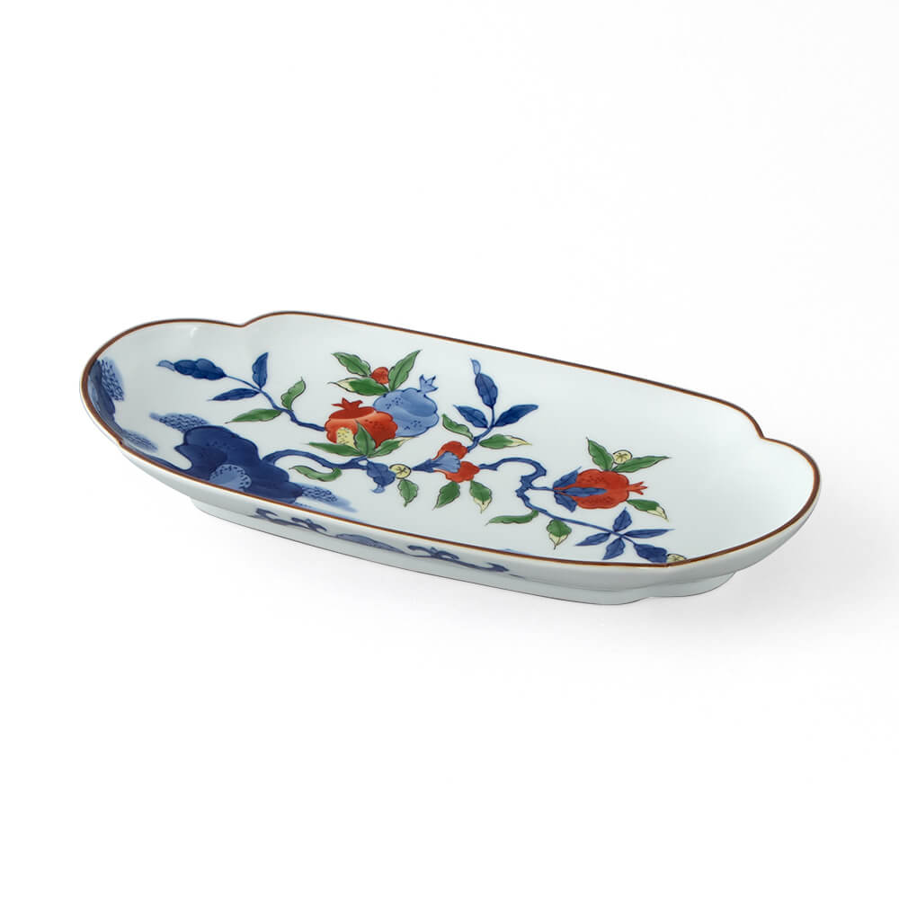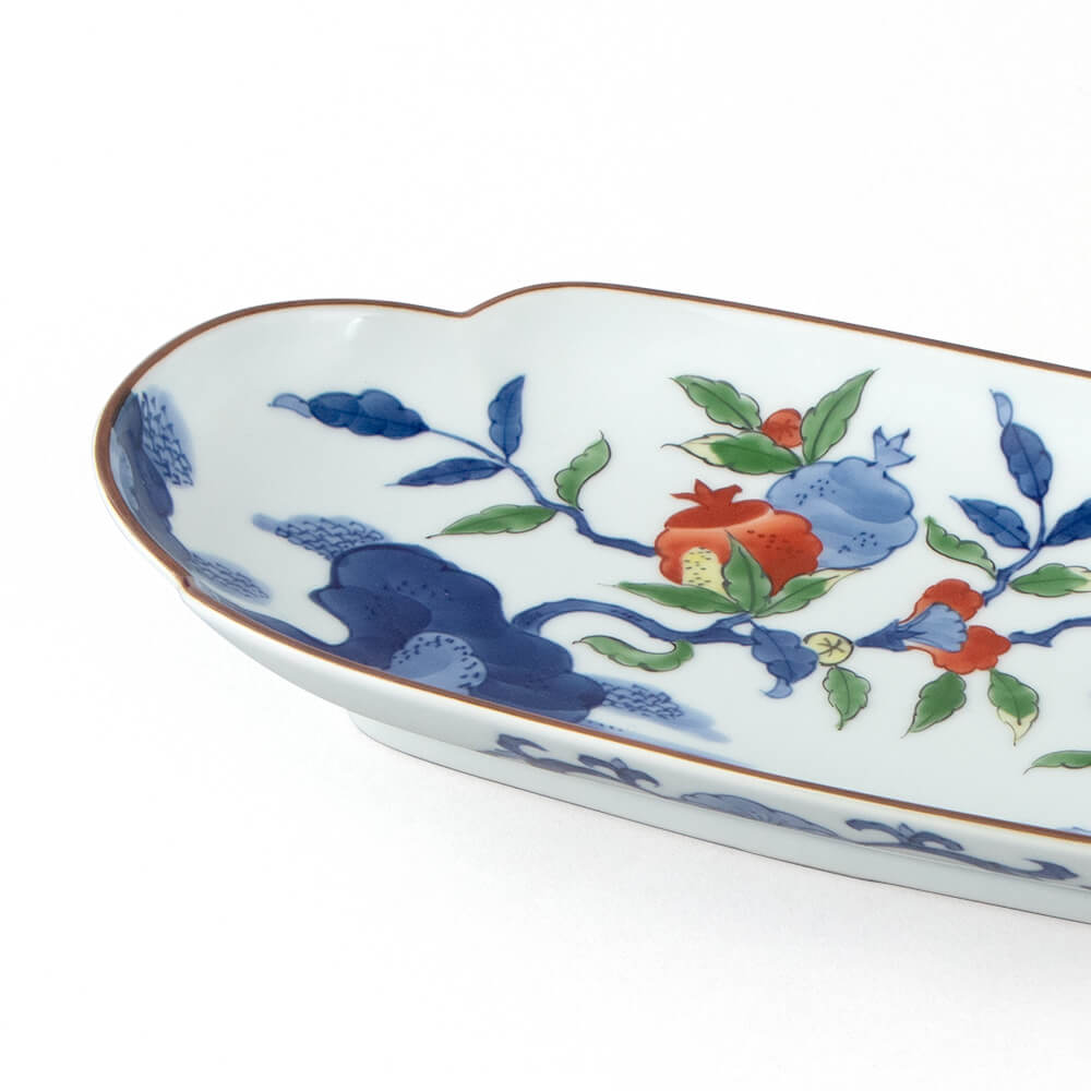 ☆30% OFF!!☆ 染錦柘榴絵 長皿(木瓜型)