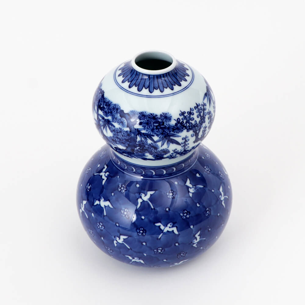 ☆40% OFF!!☆ 祥瑞手松竹梅梅鳥紋 花瓶(瓢型)