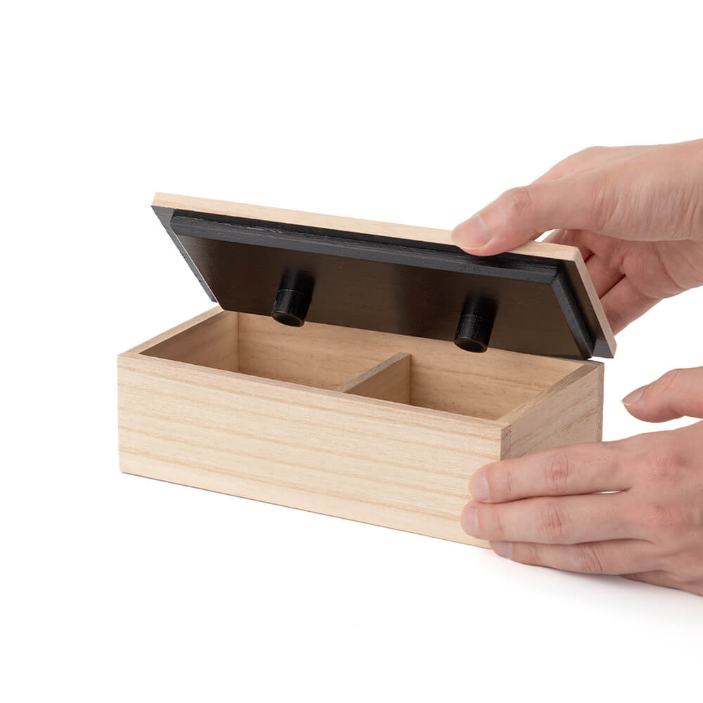 こだわりは焼き物だけでなく、入れ物の木箱にも。