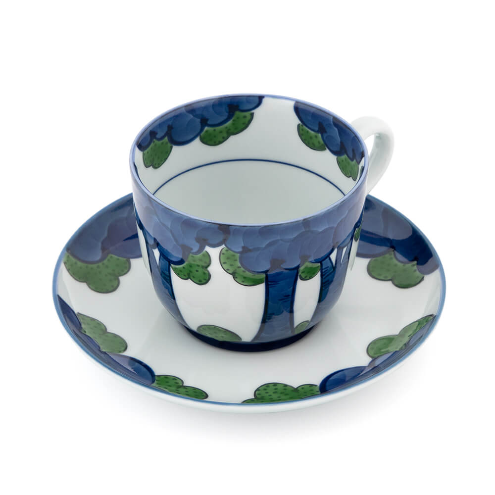 染錦大樹(そめにしきだいじゅ) 「染錦大樹」の名の通り、大らかな樹を染濃と緑彩で表現しています。 ユーモラスな絵柄・色彩からはモダンさも感じられ、デザイナーズのカトラリーやテーブル用品、モダンインテリアのなかにあっても存在感が引き立ちます。 大きめサイズのモーニングカップで、たっぷりコーヒーやカフェオレ、カフェラテなどで、朝のひとときを過ごすのにもぴったりです。 また贈り物としても大変喜ばれる器です。 染錦大樹シリーズ