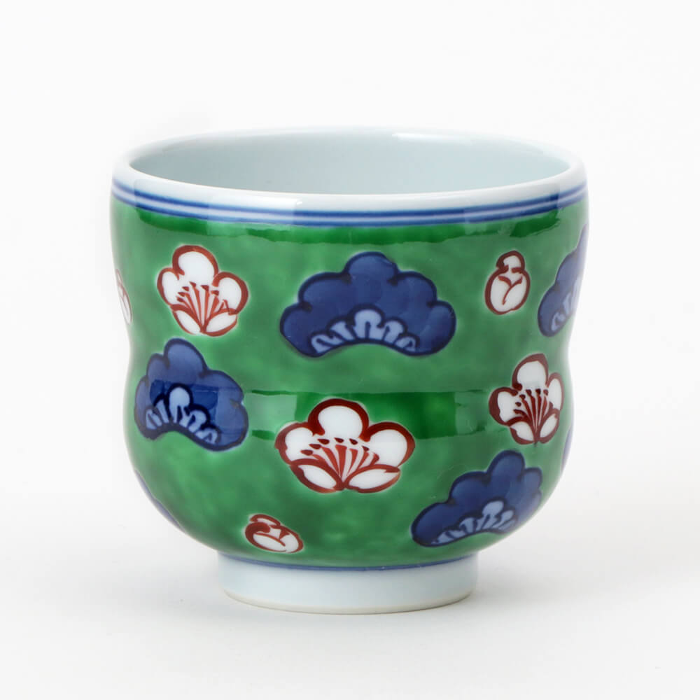 ☆50%OFF!!☆ 緑彩松梅文 湯呑