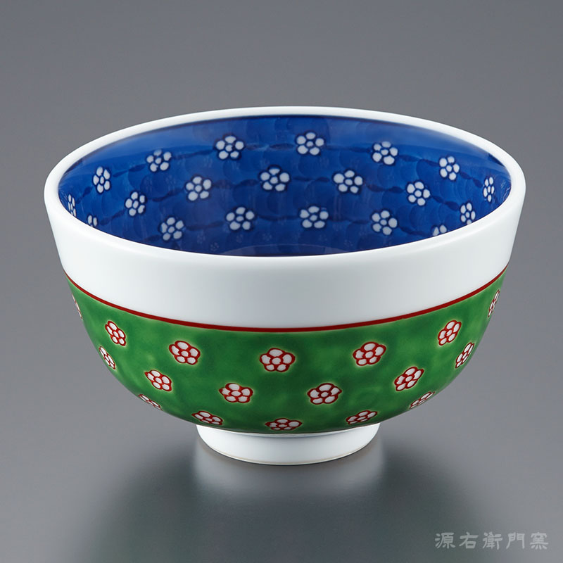 ★30% OFF!!★緑彩梅地紋 飯碗