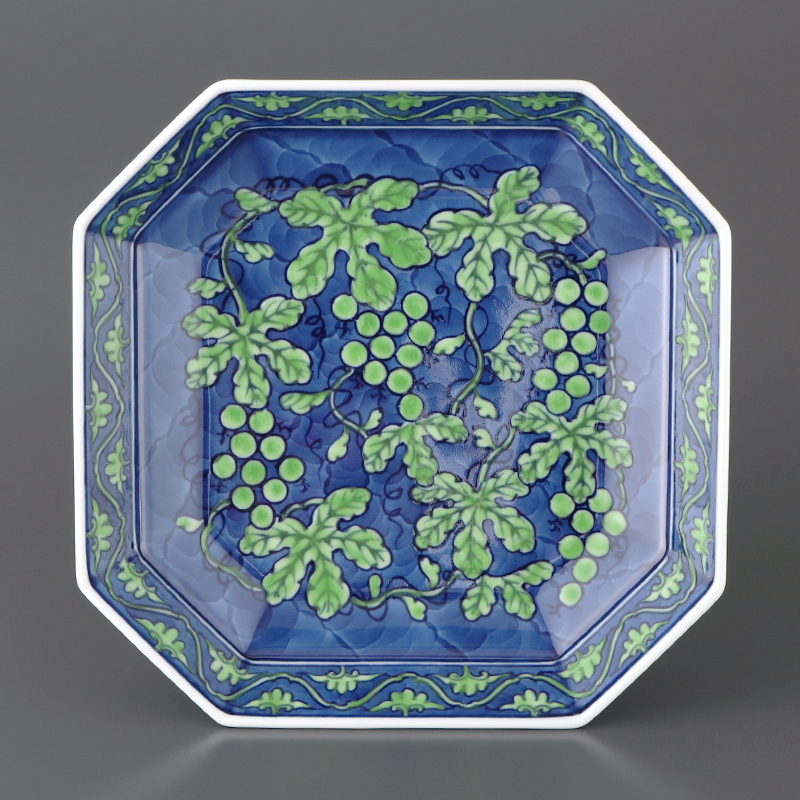 ★30% OFF!!★緑彩葡萄絵 方皿