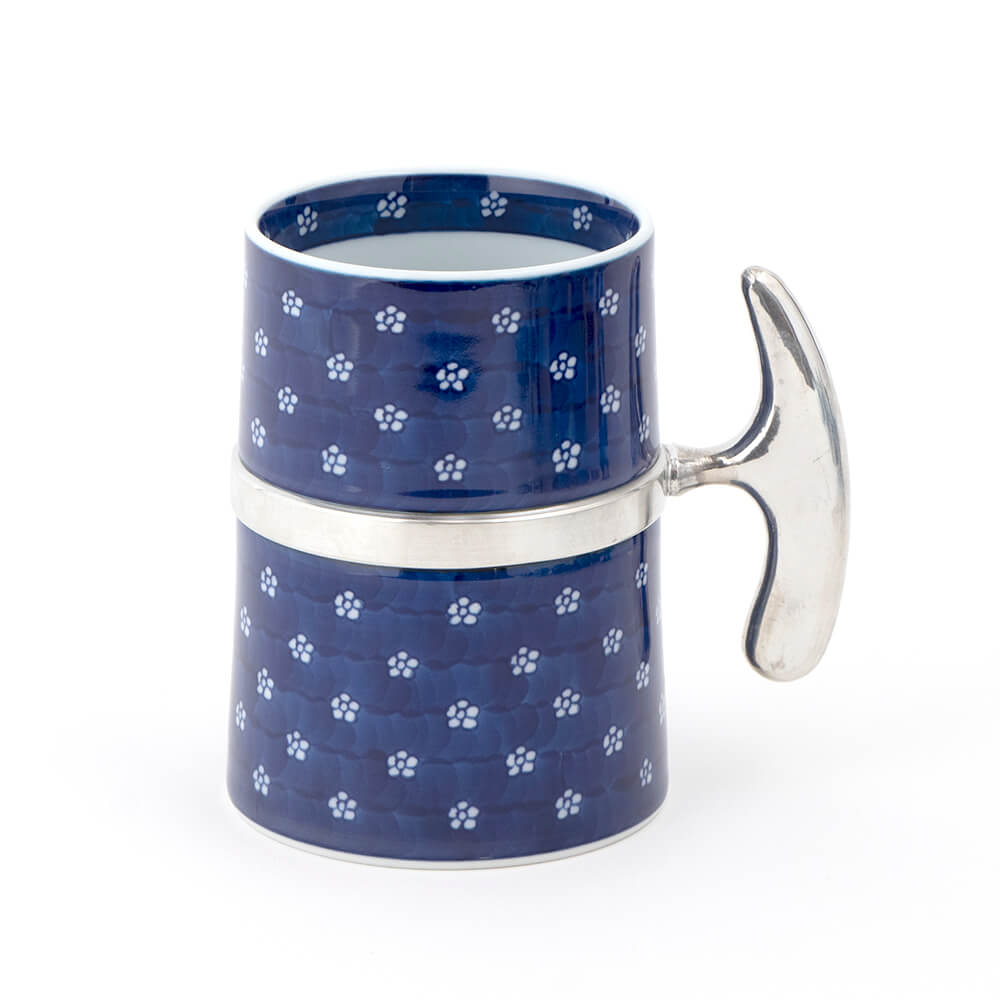 ☆70% OFF!!☆ 染付梅地紋 ビールジョッキ(ハンドル錫加工)