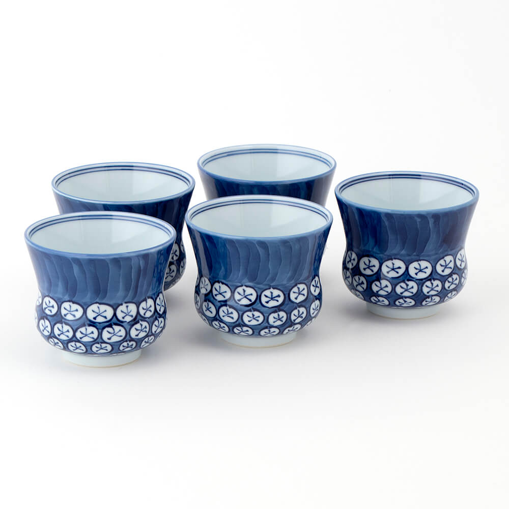☆70% OFF!!☆ 【5個セット】染付丸紋濃 湯呑
