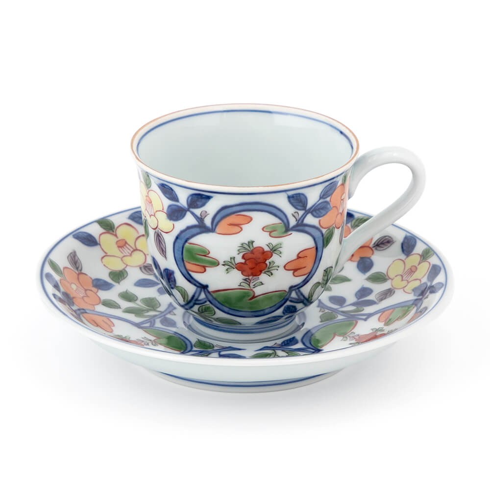 赤絵更紗唐花紋 No.1 皿(楕円・小)