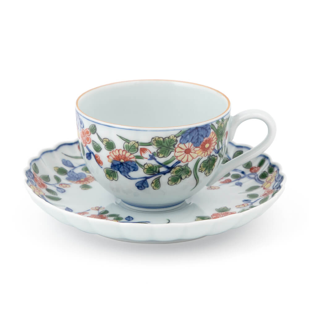 赤絵更紗唐花紋 No.5 皿(楕円・小)