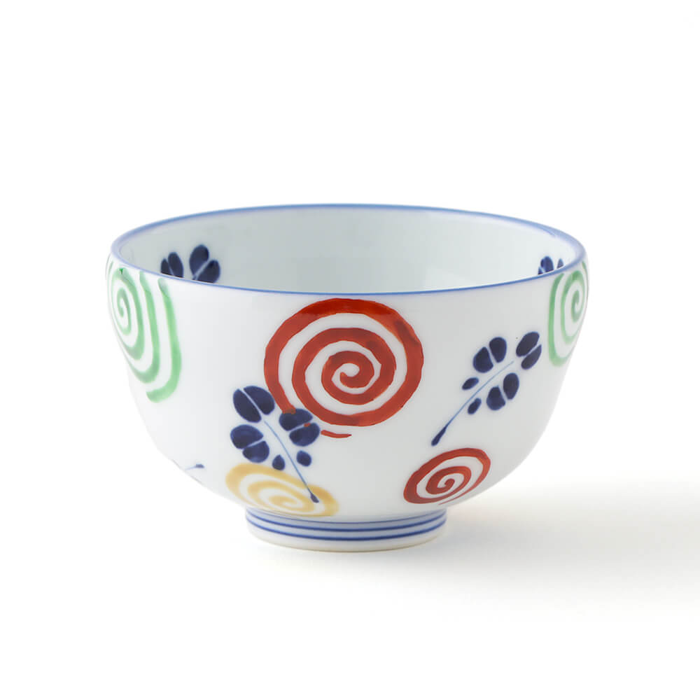 ★30% OFF!!★ 染錦渦葉散し(赤) 飯碗