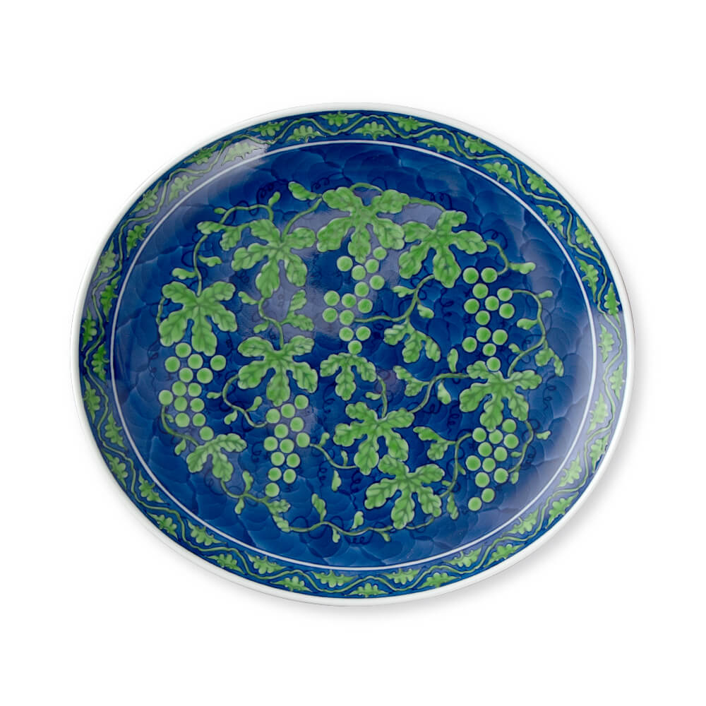 ★30% OFF!!★緑彩葡萄絵 皿(楕円・大)